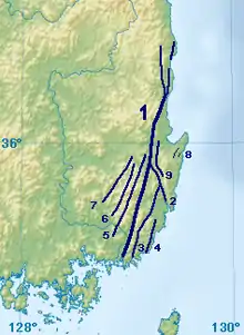 ![]() 1 is Yangsan Fault. | |