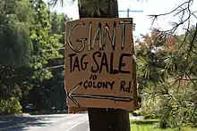 In addition to signs, many people advertise their garage sales in the newspaper in a dedicated section or on websites.[2]