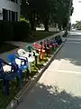 Chairs set out and roped together as people stake their viewing locations for the festival parade