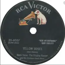 "Yellow Roses" is a song written by Ken Devine, performed by Hank Snow, and released on the RCA Victor label (catalog no. 20-6057). In April 1955, it peaked at No. 3 on Billboard's country and western charts.[1] It spent 27 weeks on the chart and was also ranked No. 9 on Billboard's 1955 year-end country and western retail chart and No. 8 on the year-end juke box chart.[1][2]