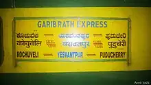 ![]() Yesvantpur–Puducherry Garib Rath Express name board | |