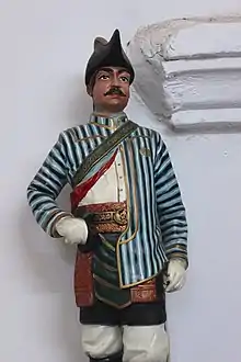The Yogyakarta Kraton Guards were formed during the reign of Hamengkubuwono I around the seventeenth century.[2] The soldiers of the infantry and cavalry troops used firearms, in the form of rifles and cannons. For about half a century, the Kraton Guards were strong, as was proven when Hamengkubuwono II led an armed resistance against the invasion of British troops under General Gillespie in June 1812. Following the reign of Hamengkubuwono III, the British company was able to dissolve the army of the Yogyakarta Sultanate. In an agreement on October 2, 1813, signed by Sultan Hamengkubuwono III and Stamford Raffles, it was written that the Sultanate of Yogyakarta was not justified in maintaining strong armed forces. Under the supervision of the British Government of the Company, the palace could have only limited armed entities. It was no longer possible for them to perform military functions. Since then, the function of armed units has been limited to guarding the sultan, the palace and its traditions.[3]