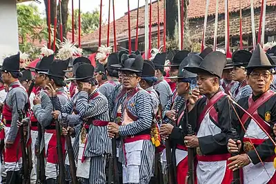 The Yogyakarta Kraton Guards (Javanese: ꦥꦿꦗꦸꦫꦶꦠ꧀ ꦏꦺꦫꦠꦺꦴꦤ꧀ ꦔꦪꦺꦴꦒꦾꦏꦂꦠ ꦲꦢꦶꦤꦶꦔꦿꦠ꧀, Indonesian: Prajurit Keraton Ngayogyakarta Hadiningrat) are the contingents of soldiers guarding the Kraton Ngayogyakarta Hadiningrat, the official residence of the Sultans of Yogyakarta.[1] They serve ceremonial and security functions.[1] By tradition, the reigning Sultan of Yogyakarta serves as Colonel-in-chief of the Guards.[1]