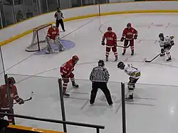 The York Lions men's ice hockey team competes in the 20-team Ontario University Athletics conference. The team has won three national championships in 1985, 1988, and 1989.[3] The program has also yielded seven Queen's Cup conference championships, most recently in 2017.[3] The team's head coach has been Russ Herrington since 2017.