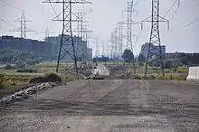 Groundbreaking occurred on July 25, 2008, with completion planned for the fourth-quarter 2009 school term. During construction, it was discovered that a gas pipeline was closer to the surface than had been thought, so the busway in the hydro corridor had to be redesigned to accommodate it.[2] This caused it to be delayed, and the only part that was open for the fourth-quarter 2009 school term was the busway within York University, which started operation on September 6, 2009.[3] Consequently, route 196 buses continued to use Keele Street and Sheppard Avenue.