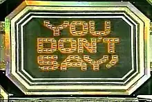 You Don't Say! is an American television game show that had three separate runs on television.[1] The first version aired on NBC daytime from April 1, 1963, to September 26, 1969, with revivals on ABC in 1975 and in syndication from 1978 to 1979. The last two incarnations were executive produced by Ralph Andrews and produced (with Gary Hunt) and directed by Bill Carruthers.