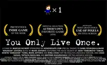 You Only Live Once is a 2009 Flash platformer by game developer Marcus Richert, designed to be only playable once, not allowing the player another chance after dying in the game, even if it is restarted. It was a finalist at Sense of Wonder Night at the Tokyo Game Show 2009.[2] It has together with One Chance been frequently cited in computer game academia as an example of the game mechanic permadeath. It has been also called a metagame and a "response" to Super Mario Bros. or an "affectionate parody of the tendency of video games to trivialise victims."[3][4][5][6][7][8]