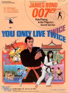 Victory Games, a division of Avalon Hill, acquired the license to create a role-playing game based on the James Bond movie franchise and published James Bond 007 in 1983. The game was supported by many adventures and supplements, including 1984's You Only Live Twice, a boxed set designed by Neil Randall, with artwork by Ted Koller and James Talbot.[3]