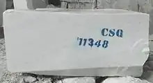 Lifting out of the quarry required a hole to be made through the block so a cable could be inserted to pull the block away so other cables could be attached for lifting out of the quarry. The lifting was done with wooden derricks above and outside of the quarry or the 50-ton electric hoist if in Quarry 2 (which was Quarry 3 during the boom period of 1905 to 1916).[3][5]