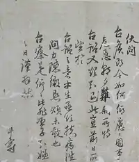 In March 1591, a letter sent by Toyotomi Hideyoshi through Joseon Tongsinsa said he would invade Ming dynasty, but unlike other subjects who insisted on hiding it from the Ming dynasty, he actively insisted on telling the Ming Dynasty the situation of Japan.[5] In October 1591, when he was exiled to Hongwon, diplomatic envoys to Ming (진주사) returned from Beijing. When they reported that the Wanli Emperor praised the situation of Japan in detail, the royal court tried to let him go of his exile for his contribution, but he was transferred to Haeju due to opposition from the Office of Censors and the Office of the Inspector General. On April 13, 1592, when Japan captured Dongnae following Busan, he was released on 23 April as king's special order.[3]