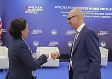 - ↑ "Fjalimi i Ambasadores Yuri Kim në Indeksin e Biznesit të Dhomës Amerikane të Tregtisë". Ambasada e SHBA në Shqipëri (in Albanian). 2020-06-29. Retrieved 2021-04-28.