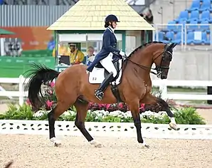 During the winter show season, she competes in the dressage shows held in Wellington, Florida.[4] During the spring and summer she competes regularly in the European circuit.