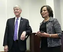 NIH director Francis Collins and NIMHD acting director Yvonne T. Maddox at NIMHD's first scientific operational planning meeting.