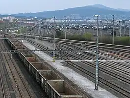 The Zürich–Baden railway line is a major railway line in Switzerland connecting the cities of Zürich and Baden. It forms part of the major east-west route between Zürich and Olten. The line generally follows the south bank of the Limmat from Zürich to Baden. A new line, the Heitersberg line, opened in 1975, branches off in Killwangen-Spreitenbach and follows a more southerly route through the Heitersberg Tunnel towards Olten. The Zürich–Baden railway is electrified at 15 kV 16.7 Hz and much of it has four tracks.