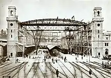 The station's main concourse itself comprises two sections. To the east is the Haupthalle (Main Hall), which was the train hall of the 1871 station but is now a pedestrian circulation space. The Haupthalle is surrounded on three sides by station buildings, whilst to the west it opens onto the Querhalle (Cross Hall), which stretches across the head of the ground level terminal platforms. These platforms, comprising two side platforms and seven island platforms, are sheltered by the 1933-built train shed and are served by tracks numbered 3 to 18.[8]