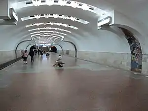 Zakhysnykiv Ukrainy (Ukrainian: Захисників України, ⓘ) (meaning: Defenders of Ukraine) is a station on Kharkiv Metro's Oleksiivska Line. The station opened on 6 May 1995.