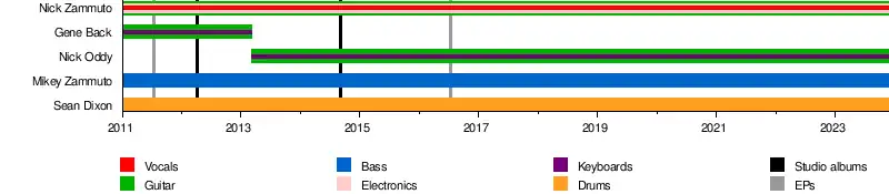 - Nick Oddy - electric guitar, keyboards (2013–present)
