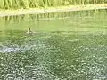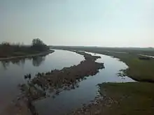 The Zasavica bog is a marshy lowland in the floodplain of the Sava River. It is a typical elongated oxbow (in Serbian: mrtvaja, dead [water]).[2] The fossilized, parallel bed of the Sava is so elongated that it actually stretches almost to the Drina river. In time, Zasavica river was formed from the subterranean waters from the Drina and from several streams, most notably, Duboka Jovača and Prekopac canal [3] (gravitationally, from the Cer mountain). The final section connecting Zasavica and Sava has been channeled (Bogaz canal). The river slowly meanders into and through the bog, widening from 50 metres (55 yd) to almost 300 metres (330 yd). The marsh, consisting of several connected bogs, covers an area of 11.5 square kilometres (4.4 sq mi). During normal water levels, the bog is 2.5 metres (8.2 ft) deep on average, but it can get up to 10 metres (33 ft) deep. The marshland's altitude varies from 76 to 82 meters (250 to 270 ft). The entire biotype includes also the Batar stream and several other canal-tributaries to Zasavica, and consists of an ecological row of water and marsh systems with fragments of flooded meadows and forests.[4] Through the Sava and Danube rivers, the Zasavica biotype belongs to the Black Sea drainage basin.