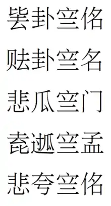• Non-standard Chinese-like characters created via ideogrammatic compounds