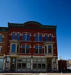 The Ziepprecht Block is a historic building located in Dubuque, Iowa, United States. Completed in 1888, it is a fine example of transitional commercial Italianate architecture.[2] The three-story brick structure features a heavy projecting cornice and rounded pediment from the Italianate, with larger paired windows from the Second Empire style, and three-sided bay windows from the Queen Anne style. It is also one of a small number of double storefront blocks that remain in the downtown area.[2] The building is named for Henry Ziepprecht a German-born druggist who settled in Dubuque in 1856 and died in 1887. His estate paid to have this building constructed on the location of an older building that housed his drug store. Now managed by Joseph Wittmer, the drug store and a confectionery were the first businesses to occupy the storefronts. The upper floors housed apartments. The building was listed on the National Register of Historic Places in 2002.[1]