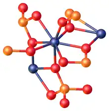 Zircon consists of 8-coordinated Zr4+ centers linked to tetrahedral orthosilicate SiO44- sites. The oxygen atoms are all triply bridging, each with the environment OZr2Si. Given its highly crosslinked structure, the material is hard, and hence prized as gemstone and abrasive.