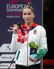 - ↑ "Inkább sír, mint mosolyog tornásznőnk, pedig első helyen lett Eb-döntős" [Our gymnast is crying rather than smiling, even though she is a finalist in the European Championships]. Magyar Nemzet (in Hungarian). 12 August 2022.