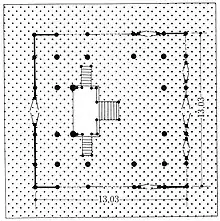 - ↑ (mokoshi, 裳階): a pent roof enclosure, generally one ken deep[7]