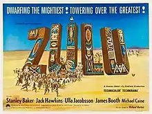 Zulu is a 1964 British epic war film depicting the Battle of Rorke's Drift between the British Army and the Zulus in January 1879, during the Anglo-Zulu War. It shows how 150 British soldiers, 30 of whom were sick and wounded patients in a field hospital, successfully held off a force of 4,000 Zulu warriors.