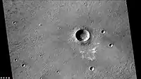 These pits may result from the interactions of hot crater-fill deposits with water and water-ice that may have been present in the subsurface prior to impact. It is not well understood whether these pits form explosively (similar to terrestrial volcanic pits/craters formed from the interaction of hot lava with wet sediments/deposits), or by collapse from the drainage of impact melts or volatiles. Since the pitted deposits occur only in the freshest and well-preserved craters suggests that they are likely related to the impact process.[2][3][4]