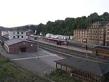 Since 1872, the line has connected to the Chemnitz–Aue–Adorf line via Aue station. The line from Chemnitz to Aue is line now integrated as the Zwönitz Valley Railway (Zwönitztalbahn) in the network of the Erzgebirgsbahn company. Construction of the Eibenstock dam in 1975 severed the line to Adorf and since the mid-1990s the remainder of the line to Blauenthal has not operated.