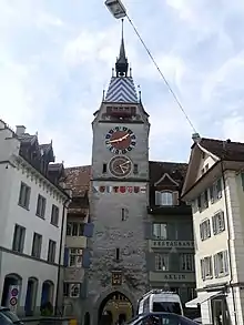 The Zytturm is a 13th-century tower in Zug, Switzerland, which houses an astronomical clock. The tower, which is 52 metres high, is located on Kolinplatz in the old town centre.[1]